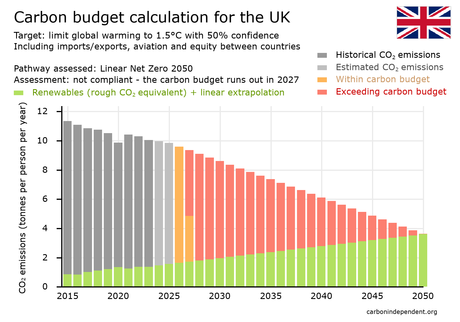 The pathway is not compliant with the CO2 budget, which is used up in 2027