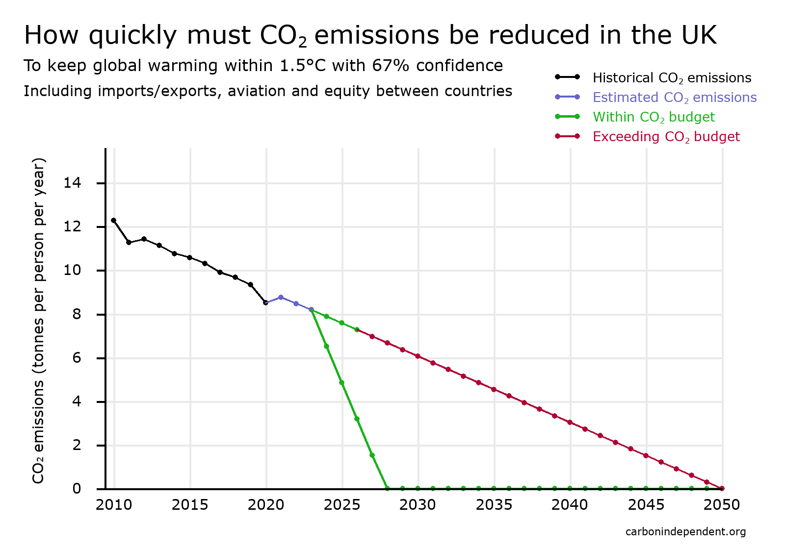 (emissions fall exponentially, i.e. with a constant halving time, fast enough to comply with the CO
